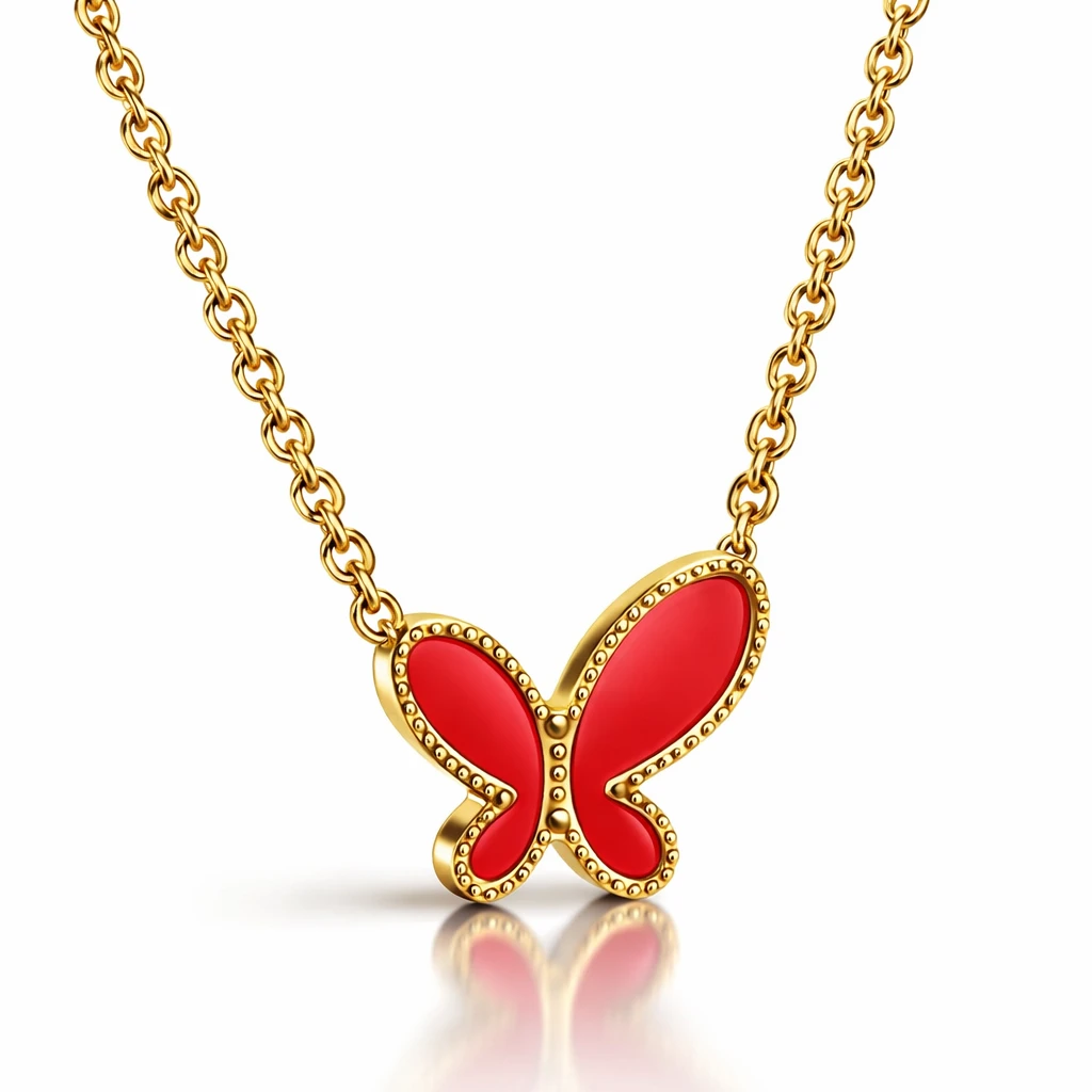 Pozlaćena ogrlica od čelika s crvenim leptirićem – istaknut i moderan look