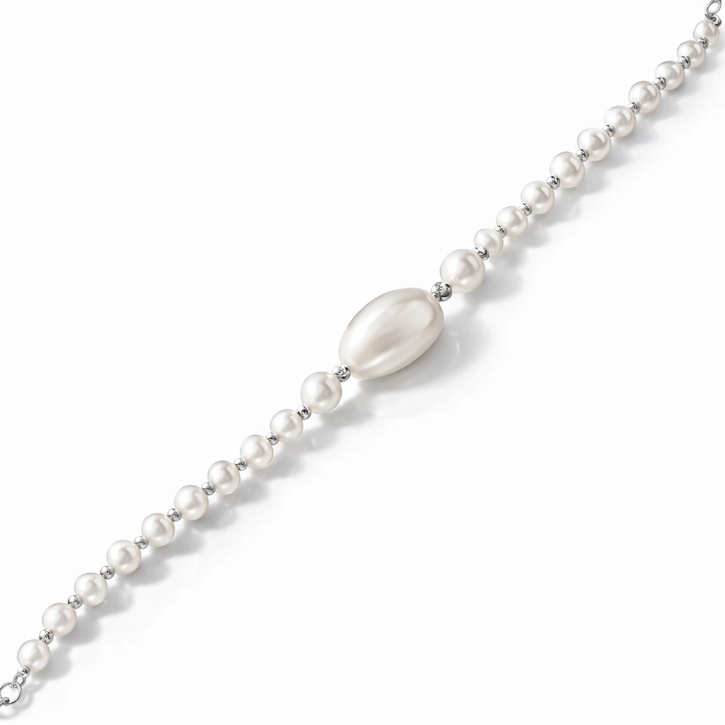 Središnji ukras, srebrna narukvica sa biserom, utjelovljuje simboliku čistoće, elegancije i unutarnje snage. Biser donosi osjećaj profinjenosti, dok srebro pruža postojanost i sjaj koji traje. Ova kombinacija osigurava da će narukvica postati jedan od tvojih omiljenih modnih dodataka.
